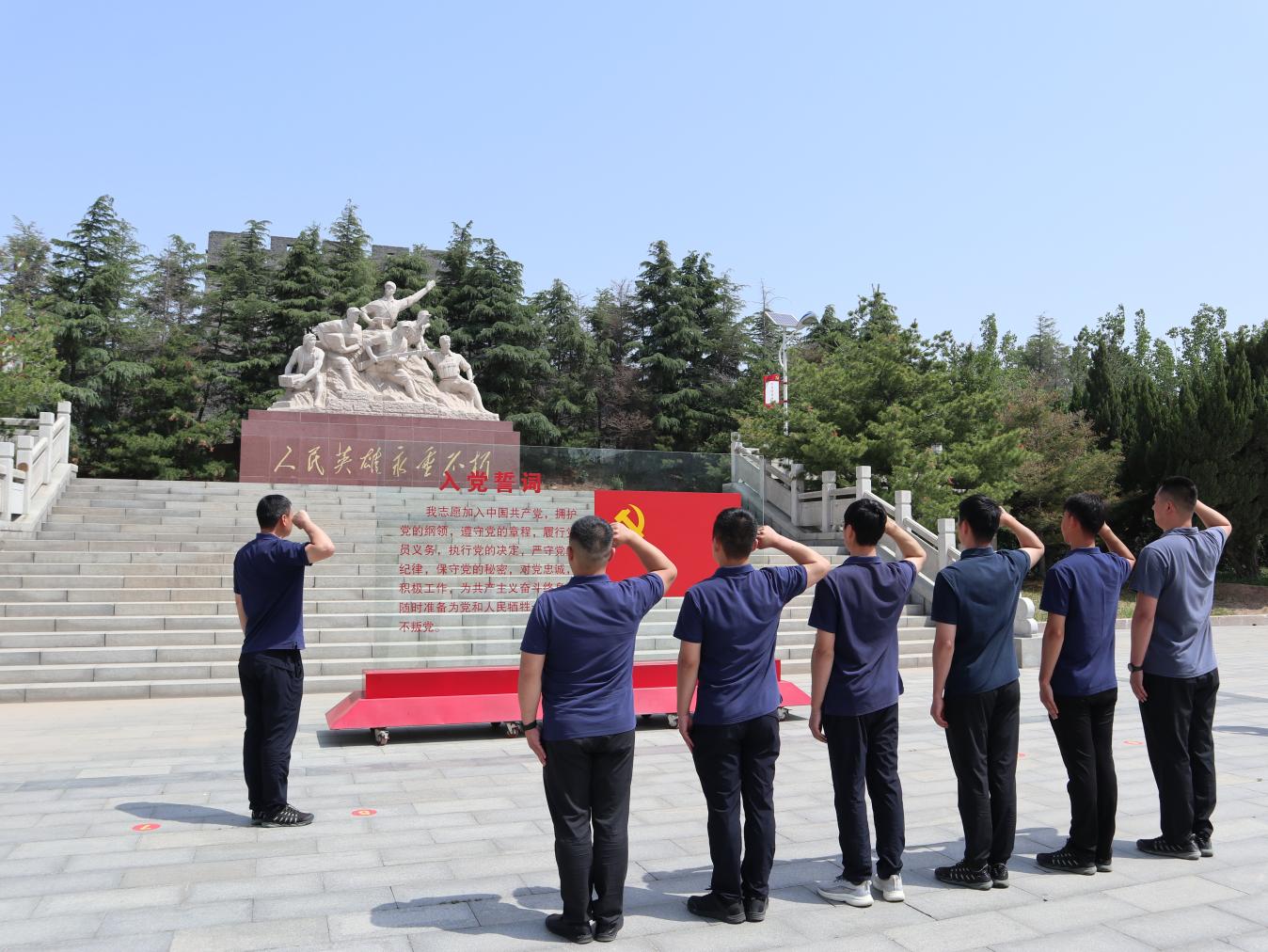 黄河三角洲1:25万地表基质调查项目组的党员们在渤海革命老区纪念园,面对党旗重温入党誓词。英雄群雕前,誓言如铁;英烈碑廊下,思绪深沉。“不屈不挠、顾全大局”的老渤海精神,化作他们扎根野外、破解地质谜题的坚韧力量,让党旗在黄河三角洲的地表基质调查一线高高飘扬。