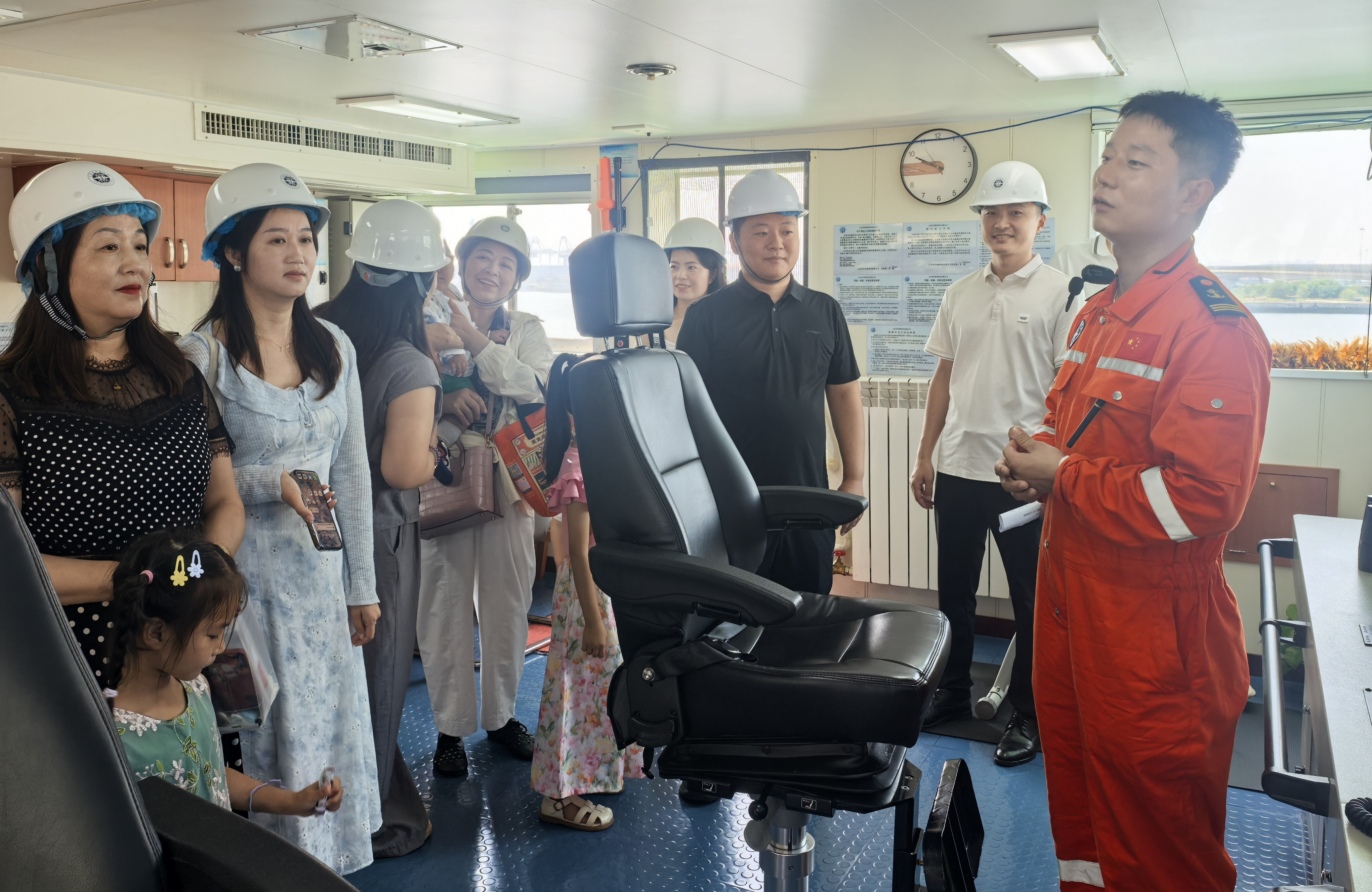 家属们先后走进船舶作业甲板、驾驶台及生活区,在工作人员的讲解下,近距离了解作业船舶关键设备的功能作用、驾驶台核心控制仪器的操作原理,亲身感受船员日常居住环境。家属们在船舶会议室观看了中心宣传视频与船舶建造纪实片,直观感受烟台中心改革发展与船舶建造历程。最后,烟台中心船舶大队主要负责人与家属们进行亲切交流,详细解答大家关心的问题,进一步增进了家属对船员工作的理解与支持。
