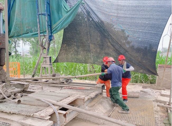 工作区地处南襄盆地泌阳凹陷,地质条件先天复杂。该区域覆盖沉积层厚度大,且地层胶结程度差,软硬岩层交替频繁,钻探过程中常出现孔壁坍塌、岩心采取不足等问题,加之夏季工期持续高温、降雨频繁,给施工带来严峻挑战。对此,项目团队以技术创新破局,通过采取“环保泥浆护壁”技术、引入“离心机固控设备”、改良“投球干烧提钻取心工艺”等技术措施,保证3个钻孔质量均符合地质设计要求,为项目成果产出提供了高质量岩心样本。