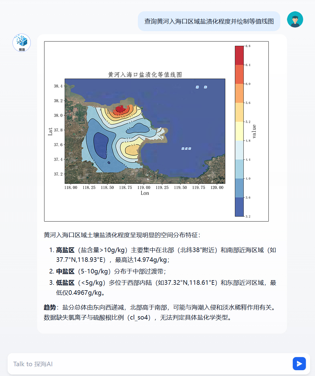 当前,以上应用已集成至烟台中心特色智能体“探海AI”,激活存量数据资产,为地调系统提供数据智能化案例。烟台中心已初步探索“数据治理-知识构建-智能应用”技术链,后续将在确保数据安全的前提下,持续深化人工智能与现有业务系统融合,逐步构建支持自然语言交互的“海岸带地质信息智能服务中枢”,着力打造基于数字化智能化技术的现代地质工作新范式。