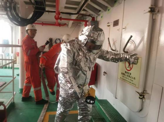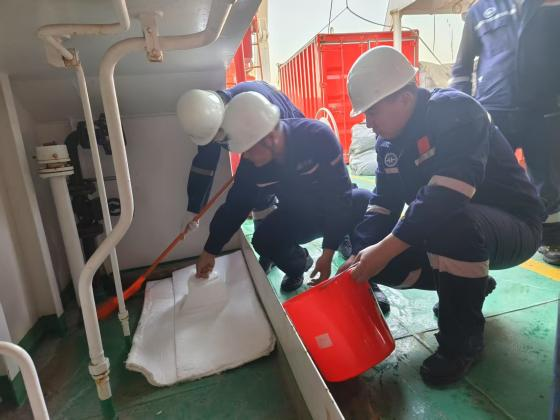 本次演练包含消防、溢油和弃船三个科目。演练前,船长组织开展安全教育,学习应急预案,熟悉应急信号和处置程序。应变信号发出后,全体船员迅速响应,按照应变分工携带器材快速集结,分析研判险情后进行有效处置。此次演练提高了全体船员的安全意识,锻炼了应急处置能力。
