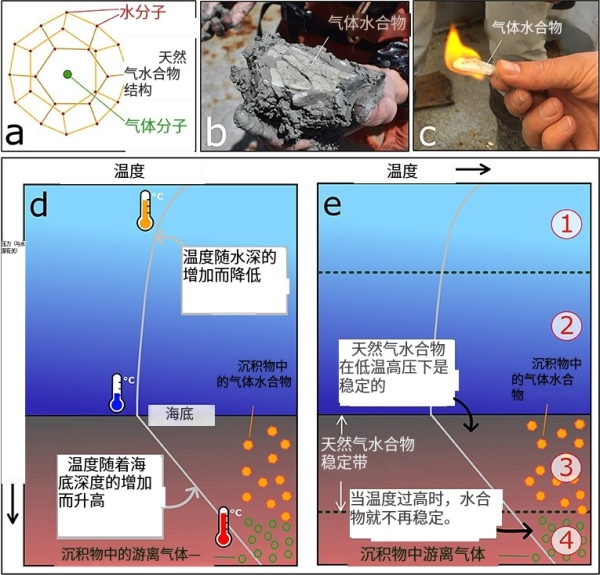 天然气水合物主要分布在北半球,以太平洋边缘海域最多,其总量换算成甲烷气体约为(1.8-2.1)×1011立方米,大约相当于全世界煤、石油和天然气等总储量的两倍,被认为是一种潜力巨大、可供21世纪开发的新型能源(图4)。随着陆地的矿产资源日益枯竭,海洋矿产资源的勘查、开发已迫在眉睫。