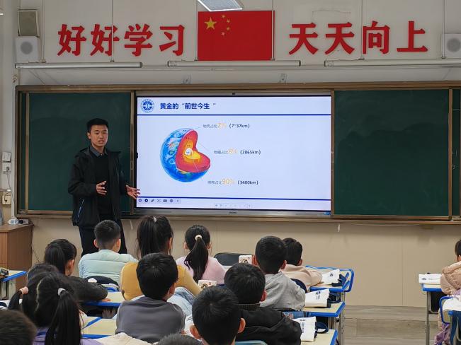 本次科普活动精心设计了专题授课、趣味互动、宣传展示等多个环节,全方位调动同学们的参与热情。科普人员结合小学生的认知特点,以生动形象的语言、图文并茂的课件循循善诱,从黄金的“前世今生”“超能力”“工作”状态到“文化价值”,层层深入解锁黄金的神秘面纱。