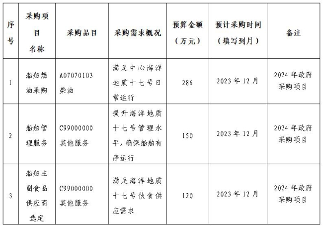 为便于供应商及时了解政府采购信息,根据《财政部关于开展政府采购意向公开工作的通知》(财库〔2020〕10号)等有关规定,现将烟台海岸带地质调查中心2023年12月采购意向公开如下: